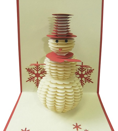 冬の定番、雪だるま!とてもかわいらしい立体カードです。今年のクリスマスのメッセージカードにぜひご利用ください。