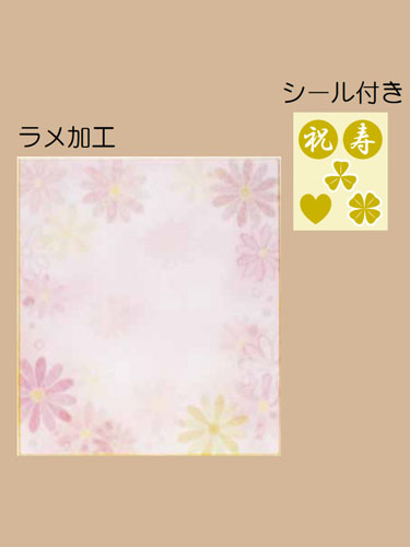 ラメ加工をした色紙です。 フラワー(ラメ入り)シール付き。