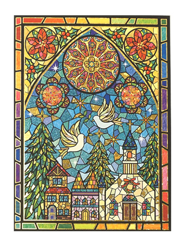 ステンドガラスをモチーフにしています。カラフルな色使いと、ふんだんに使用した箔とラメの輝きが美しいです。細かなデザインに、思わず見入ってしまいます。