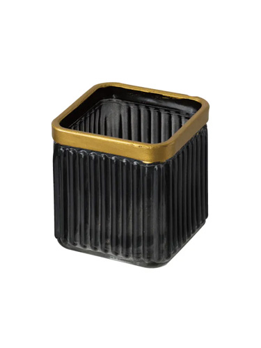 ブラックカラーに金の縁のスクエア形ガラスポット。