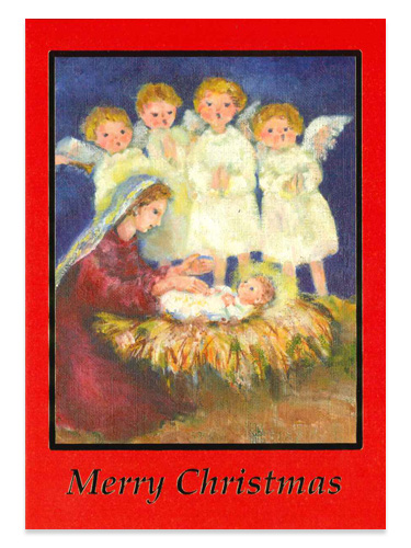Sr.矢野滋子が描いた、幼子のご降誕を祝う天使と羊飼いたちのクリスマスカードです。